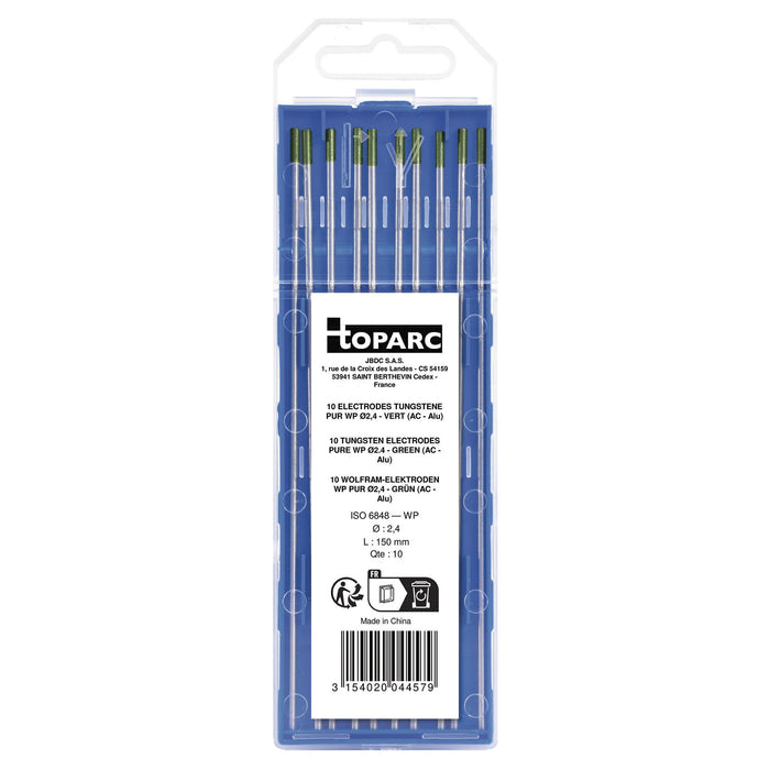 Les électrodes Tungstène sont utilisées pour le soudage TIG. La température de fusion très élevée du Tungstène (environ 3400°C) permet de tenir un arc électrique entre la pièce à souder et l’électrode sans user cette dernière rapidement. Plusieurs types d’électrodes existent, en fonction des procédés utilisés. Les normes EN26848 et ISO 6848 apportent les informations relatives à ces électrodes.