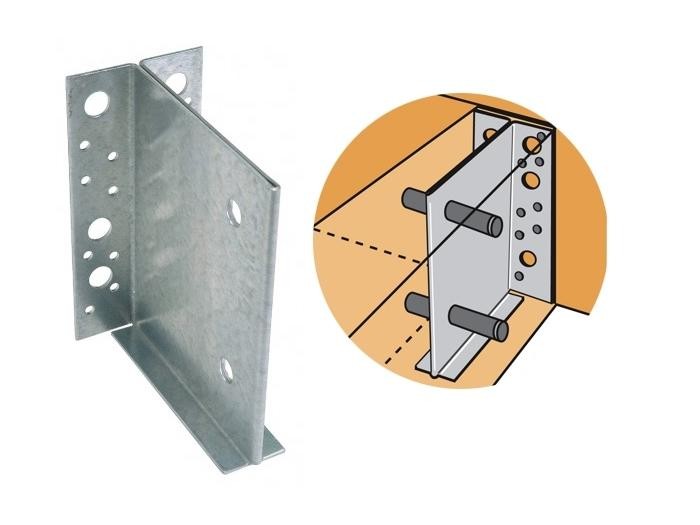 L'étrier à âme intérieure permet un assemblage discret le talon inférieur positionne l'étrier par rapport au bois facilitant le montage des broches applications : solives, pannes, poutres
