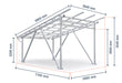 Le carport est fabriqué en profilés en aluminium de haute qualité, offrant une protection optimale contre les intempéries et le vent. Il possède une entrée de 2650 mm de hauteur, une largeur de 3640 mm et une longueur de 6840 mm. La hauteur de passage sous la structure est de 3540 mm. Les éléments sont solidement ancrés au sol à l’aide de boulons d’ancrage, avec possibilité de fixation directe sur des surfaces en béton ou asphalte. Pour d’autres types de sols, il est recommandé de préparer des fondations adaptées.