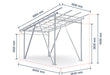 Conçu avec des profilés en aluminium durables, il protège votre camping-car contre les intempéries, avec une entrée de 3 630 mm de hauteur, une largeur de 3 640 mm, et une longueur de 6 840 mm. La hauteur de passage sous la structure est de 4 500 mm. L’ensemble est solidement fixé au sol avec des boulons d’ancrage. La fixation est possible directement sur du béton ou de l’asphalte, mais pour d’autres types de sol, des fondations adaptées sont nécessaires.