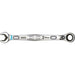 La forme dodécagonale assure un ajustement parfait avec la vis ou l'écrou, ce qui diminue le risque de dérapage. Un angle de reprise de seulement 30° côté fourche évite de perdre du temps à tourner la clé pendant le vissage. Mécanisme de cliquet côté œil avec denture exceptionnellement fine de 80 dents pour plus de flexibilité dans les espaces réduits.