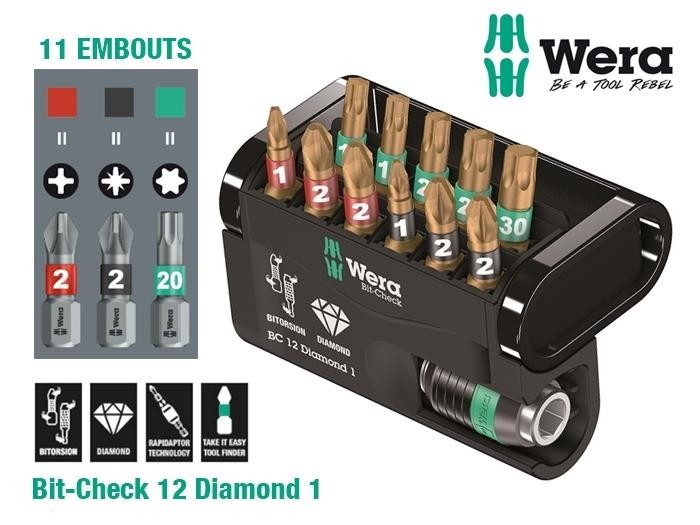 - 11 embouts BiTorsion pour une longévité accrue avec revêtement diamanté pour un positionnement sûr dans la vis