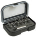 - 19 pièces : Fente : 4,5 - 5,5 - 6,5 mm - PH1 - PH2 - PZ1 - PZ2 - PZ3 - PH4 Torx : 10 - 15 - 20 - 25 - 30 - 40 Hexagonal : 3 - 4 - 5 mm - Porte embout 60 mm
