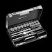 24 x douilles 1/2" 6 pans métriques : S.H 8 - 9 - 10 - 11 - 12 - 13 - 14 - 15 - 16 - 17 - 18 - 19 - 20 - 21 - 22 - 23 - 24 - 26 - 27 - 28 - 29 - 30 - 32 - 34 mm.