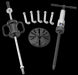 1 jeu de 5 griffes U.9-02, longueur 169 mm. Diamètre pour axes de roues jusquà 16 mm.