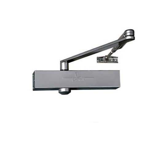 Ferme-porte de type Groom GR150, à technologie à pignon et crémaillère symétrique et bras à compas, conforme à la norme EN 1154, certifié , conformité accessibilité < 50 N validée par un laboratoire indépendant.