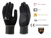 100% polyamide. Enduction polyuréthane sur paume et bout des doigts.