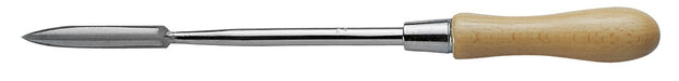 Présentation : lame chromée, polie, acier haute qualité et manche en bois verni.