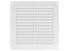 Grille d'aération autobloquante en plastique ABS de haute qualité, durable et résistante aux UV, respectueuse de l'environnement et non toxique. Comprend un filet de protection contre les insectes. Lattes inclinées qui dirigent le flux d'air. Passage d'air 250 cm². 200 x 200 mm