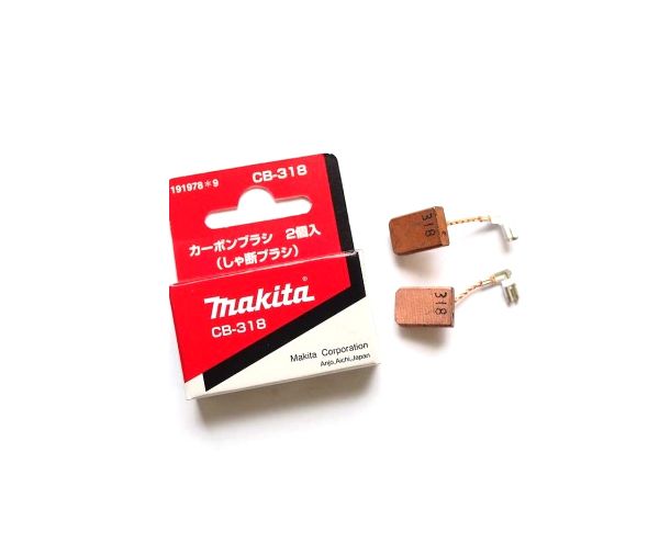 Jeu de charbon auto-rupteur CB-318 Makita pour les machines : Makita 9564, 9564CV, 9564PCV, 9565, 9565CV, 9565CVL, 9565PCV, BO6040, GD0800C, GD0810C, PW5000C, SG1250.