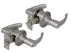 Jeu de pommeaux type boule avec pêne d'entrée 60/70 mm. Pêne à angle carré avec système anti-carte. Fonction d'entrée avec clé extérieure et condamnation intérieure : le système est libéré lorsquil est débloqué parla clé ou la condamnation et se bloque de la même manière. Clé en brut modèle 5100. Pour portes en bois de 35 à 45 mm de large. Laiton Chromé mat Boutons-Serrures Bec de canne modele 730 ref.17344