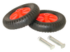 Kit 2 roues pleines Ø220 mm : corps/moyeu en polypropylène rouge et bandage caoutchouc noir - livrés avec axes et écrous