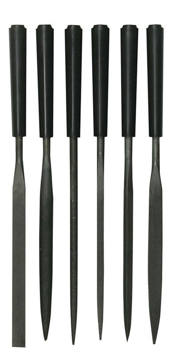 - Jeu de 6 limes 150 mm : plate, demi-ronde, ronde, carrée, triangulaire, plate pointue