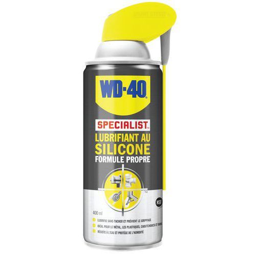 - Elle évite les frictions et le grippage des pièces mobiles avec de bonnes performances en cas de fortes pressions. Le Lubrifiant au Silicone WD-40 Specialist résiste à des températures extrêmes et sa formule est certifiée H2 par la NSF.