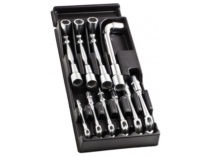 - Composition : 10 clés à pipe débouchées 6 pans : 75.8-10-11-12-13-14-16-17-18-19 mm.