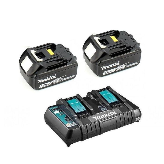 Retrouvez un pack énergie Makita constitué de 2 batteries 18V 5Ah ainsi qu'un chargeur double.