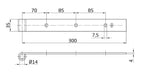 Mesurant 300 x 35 mm avec une épaisseur de 4 mm, le gond lui possède un diamètre de 14mm.