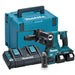 Ce perforateur Makita est alimenté par deux batteries en série de 18V gamme LXT.