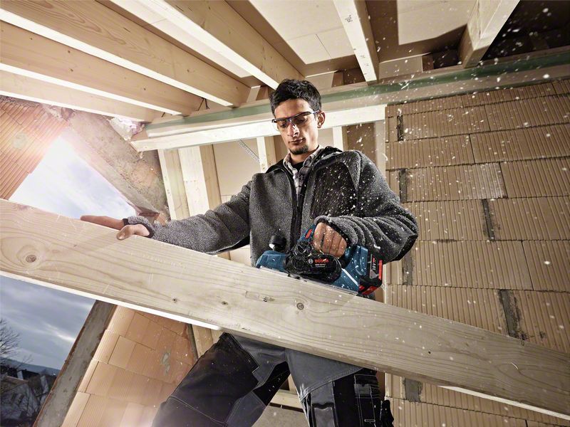 Progression de travail rapide et sans interruptions grâce au réglage en continu de la profondeur de passe jusquà 1,6 mm Surfaces parfaites de grande qualité grâce au fer réversible au carbure très endurant et très bien affûté Grande légèreté pour une prise en main facile et agréable /Les batteries COOLPACK innovantes garantissent une dissipation optimale de la chaleur et prolongent la durée de vie jusquà 100 % (par rapport aux batteries Lithium-Ion sans COOLPACK) Système ECP (protection électronique des cellules) Bosch : protège la batterie contre la surcharge, la surchauffe et la décharge totale Frein moteur pour une assise sûre Changement de fer rapide pour un travail en continu Ejection des copeaux droite/gauche au choix /Régime à vide: 14.000 tr/min Épaisseur des copeaux: 0 1,6 mm Epaisseur de feuillure: 0 8 mm Largeur de rabotage, max.: 82 mm Tension de la batterie: 18 V