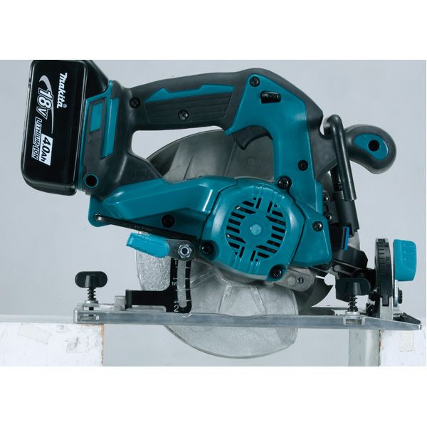 La hauteur de coupe maximale de cette scie circulaire est de 57 mm à angle droit soit 90°. L'inclinaison est réglable de 0° à 50°.