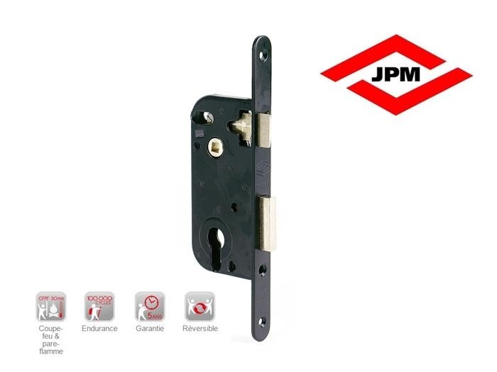 Serrure à mortaiser monopoint JPM Multibat, pour cylindre Profil Européen, en axe 40 mm et entraxe 70 mm, pour portes simple vantail.