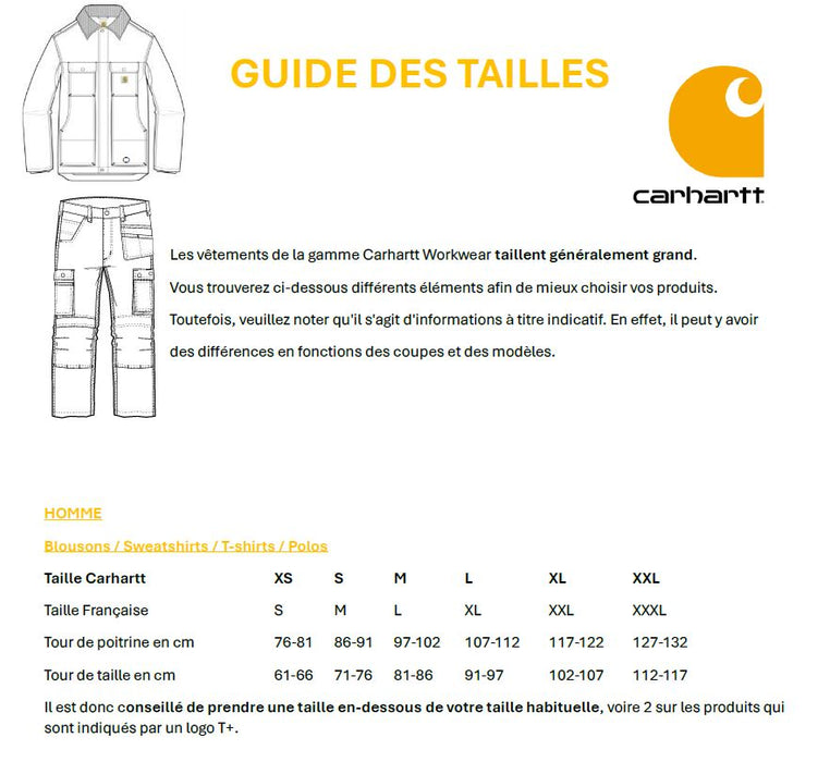 Un grand logo imprimé de Carharrt est placé sur le devant du pull.