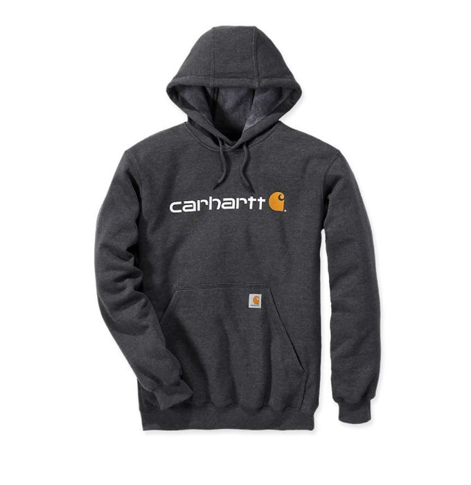 Le pull à capuche Signature Logo de la marque américaine de qualité Carhartt est un pull parfaitement confortable à porter lors d'une aventure en plein air, au travail ou à porter dans des moments décontractés. Il a une capuche spacieuse qui est ajustable au moyen des cordons et une poche kangourou sur le devant.