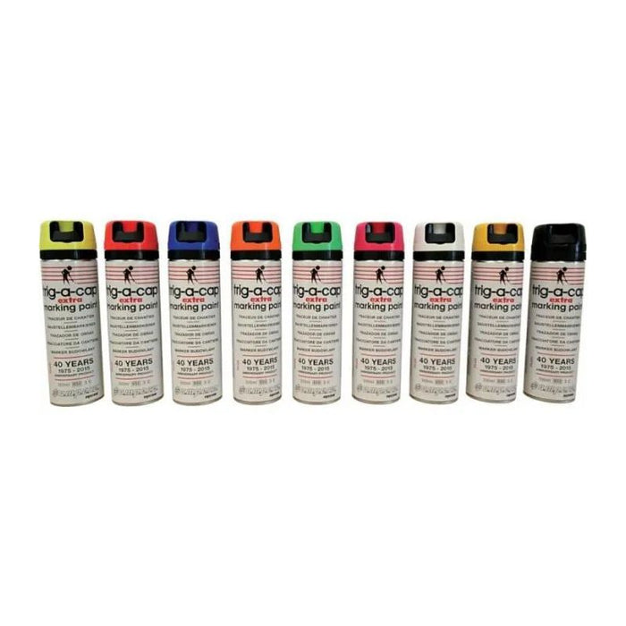 Bombes de peinture de chantier pour marquages, signalisation, repérages topographiques et travaux publics.
